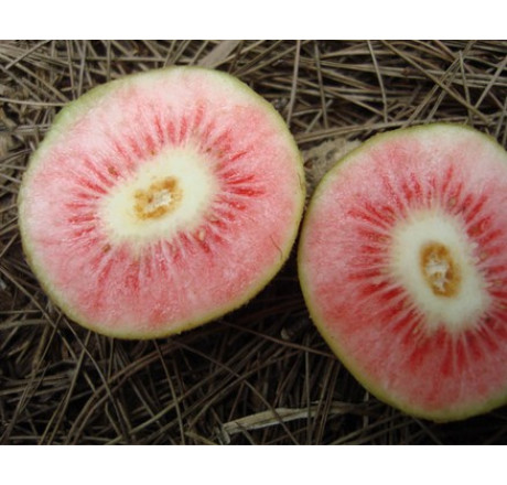 Atraktivní, v našich obchodech ještě neprodávané fialovočervené hladké plody kiwi. Po překrojení Vás okouzlí červenavá dužina a typická sladko-trpká chuť. Plodit začíná už dva roky po výsadbě. Úroda je vysoká a pravidelná. Na opylení je potřebná samčí rostlina kiwi ´Male´. Plně mrazuvzdorná odrůda. Zjistěte, jak je jednoduché dopěstovat si vlastní kiwi! Pozdě na podzim Vám poskytnou množství potřebného vitamínu C.***PARAMETRY***Světlo - slunce, polostín; Půda - středně těžká, běžná půda, slabě kyselá; Umístění - pergoly, treláže, zástěny; Odolnost - plně mrazuvzdorná; Řez - každoroční jarní řez; Zálivka - střední; Vlhkost půdy - vlhká; Barva listu - zelená; barva květu - bílá; Kvetení - 6; Speciální vlastnosti - drobné, chutné plody dozrávají v říjnu; Výška - nad 4 m; Forma - popínavá liána; Rychlost růstu - rychlý; Opadavost - opadává