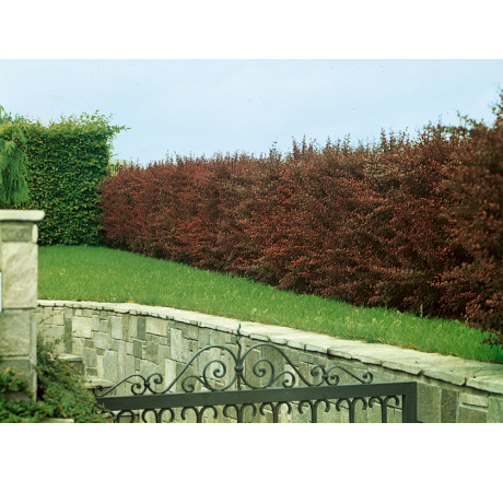 Berberis thunbergii Atropurpurea - Purpurový dřišťál thunbergův je dřevina vhodná na výsadbu živého plotu stříhaného i volně rostoucího. Má trny a atraktivní červené drobné listy. Kvete žlutočervenými květy v dubnu až květnu. Je opadavý. Průměrně rychle roste a vytváří zejména na podzim atraktivní živý plot díky měnící se barvě listů a červeným podlouhlým nejedlým plodům. Vhodný do lemů, na vytvoření křovin, neproniknutelné živé střižené ploty. Dobře snáší řez a stříhání během celého roku, zpravidla vždy po odkvětu.***PARAMETRY***Kvetení - 3 , 4 , 5; Výška - do 4 m ; Šířka - do 2,5 m; Odolnost - plně mrazuvzdorná ; Světlo - slunce ; Zálivka - malá ; Půda - středně těžké , písčitohlinité , hlinité_ vápenatá půda;Vlhkost půdy - suchá ; Barva listu - vínověčervená , bordó ; Barva květu - žlutá ; Rychlost růstu - rychlý ; Umístění - solitéra_skupinová výsadba_živé ploty ; Speciální vlastnosti - jedovatost_trny , ostny