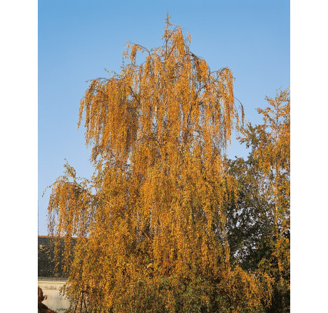 Převislá smuteční bříza. Betula pendula 'Tristis' má obloukovitě převislé tenké větve s pozůstatkem bílé borky. Nejlépe se jí daří na slunném místě, dobře snáší chudé i skalnaté půdy. Pěstuje se zejména pro svůj habitus a dekorativní kůru. Určitě patří do zahrad lesního typu, romantických zahrad, kde dominuje více kusů v trávníku. *** PARAMETRY *** Kvetení - 3; Výška - nad 4 m; Šířka - do 4 m; Odolnost - plně mrazuvzdorná ; Světlo - slunce ; Zálivka - střední ; Půda - suché , kamenité a na živiny chudé půdy ; Vlhkost půdy - suchá ; Barva listu - zelená ; Barva květu - zelená ; Forma - převislá ; Rychlost růstu - rychlý ; Umístění - solitéra_skupinová výsadba