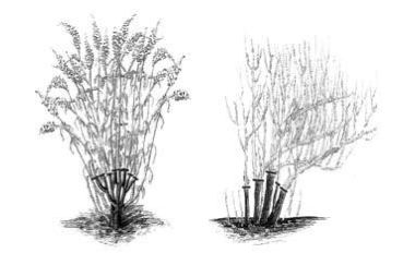 vyžadují silný zpětný řez. (budleia, hydrangea, caryopteris, hypericum, levandula, erica); řežou se nakrátko podle povahy rostliny a tloušťky dřeva na jaře, na dva až šest pupenů. Staré větvičky se úplně odstraňují.