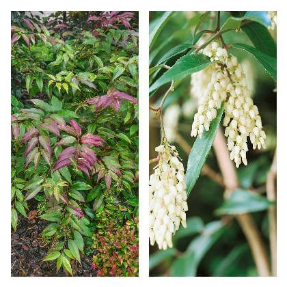 Mezi další oblíbené druhy lze zařadit například pieris květnatý, který tvoří vejčité listy s typickou tmavě zelenou barvou. V období od dubna do května se objevují bílé květy.