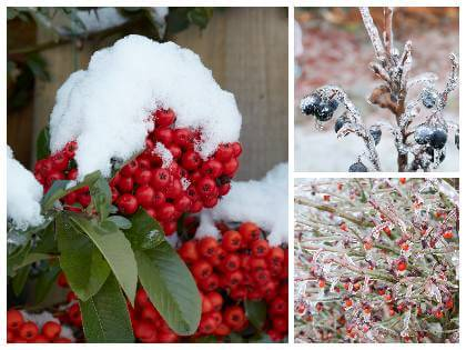 Na zahradě by neměl chybět dřín / svída japonský ( cornus ), kalina (Viburnum ), hloh ( Crataegus ), břečťan ( hedera ), zimostráz ( buxus ), cesmína ( Ilex ), mahónie ( mahonia ), hlošina ( eleagnus ), skalník ( cotoneaster ) a brslen ( euonymus ).