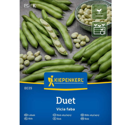 Výnosný druh bobu s jemnými bělavě zelenými boby. Zrna od 12 do 15 mm. Dobře naplněné, dlouhé, vzpřímené lusky. Obsah na cca 5 běžných metrů. Není mořené ani geneticky upravované.