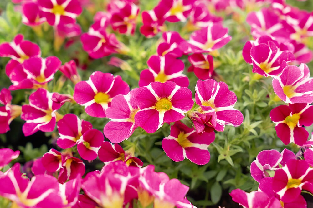 Calibrachoa - minipetúnia s menšími květy bílo růžové barvy se žlutým středem zaujme všech kolemjdoucích. Kvést začíná poměrně brzy od začátku května až do mrazů. Pro opakované a bohaté kvetení je nutné rostlinu pravidelně zaštipovat. Vytváří kompaktní porosty, vynikne samostatně v závěsných nádo...