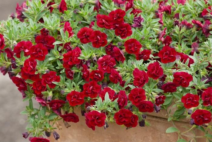 Calibrachoa - minipetúnie s nádhernými plnými květy červené barvy zaujme všech kolemjdoucích. Kvést začíná poměrně brzy od začátku května až do mrazů. Pro opakované a bohaté kvetení je nutné rostlinu pravidelně zaštipovat. Vytváří kompaktní porosty, vynikne samostatně v závěsných nádobách i v kvě...