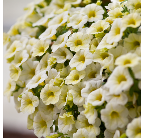 Calibrachoa - minipetúnie s nádhernými bílo-žlutými květy zaujme všech kolemjdoucích. Kvést začíná poměrně brzy od začátku května až do mrazů. Pro opakované a bohaté kvetení je nutné rostlinu pravidelně zaštipovat. Vytváří kompaktní porosty, vynikne samostatně v závěsných nádobách i v květináčích...
