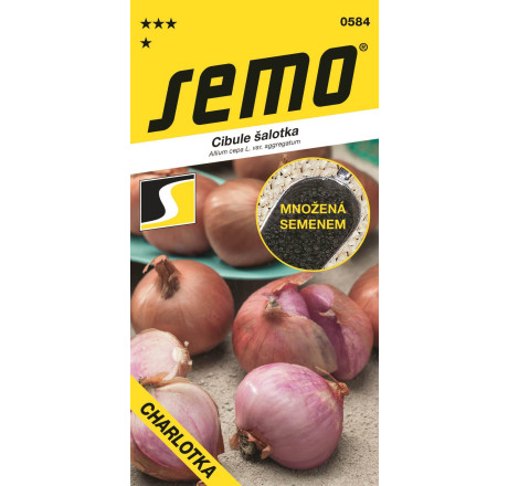 NOVINKA! Cibule šalotka Charlotka je naše raná šalotka se pěstuje pouze ze semen. Není to typická množilka, při jejím přesazení získáme opět jen jednu cibuli. Její kulovité cibule mají šířku 5 až 6 cm a průměrnou hmotnost 70 gramů. Mají typickou šalotkovou barvu – tedy načervenalou, můžeme říci i červenoměděnou. Cibule šalotka Charlotka se vyznačuje jemnou cibulovou chutí charakteristickou pro šalotky a velmi dlouhou skladovatelností.