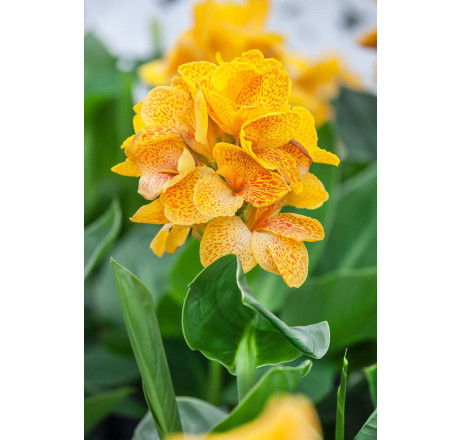 Novinka! Dosna ´Happy Emily´ má drobnější žluté květy a ty se prodírají přes zelené listy. Vynikne v záhonu. Před zimou se vybírá z půdy. Dá se pěstovat v květináči. Výška do 50 cm.