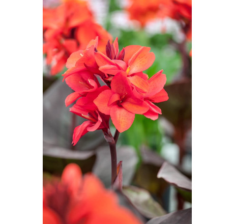 Novinka! Dosna ´Happy Julia´ má drobnější červené květy a ty se prodírají přes vínově červené listy. Vynikne v záhonu. Před zimou se vybírá z půdy. Dá se pěstovat v květináči. Výška do 50 cm.