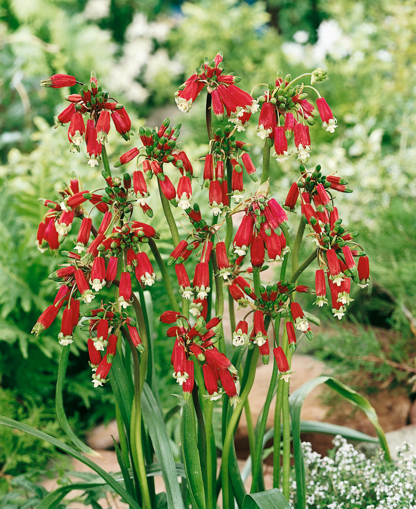 Až do deseti visících červených kvítků se žlutozeleným okrajem visí na jedné stopce. Kvete dlouho tak na zahradě i ve váze. Dobře snáší letní horka. V chladnějších oblastech doporučujeme místo výsadby během zimy chránit mulčem.