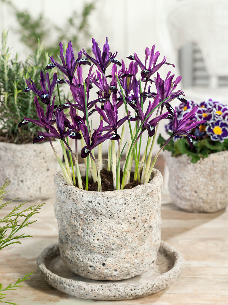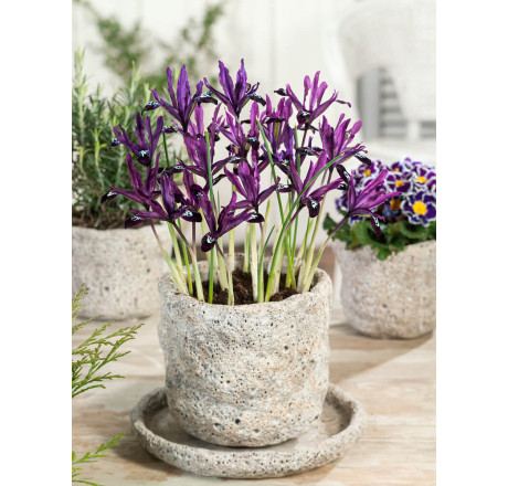 NOVINKA! Cibulovitý kosatec ´Pauline´ ze skupiny reticulata s nepopsatelnou barvou. Promíchávají se zde fialová a tmavě fialová. Květy dominují nad listy. Kvete na začátku jara, mnohdy již v únoru. Výška 15 cm.