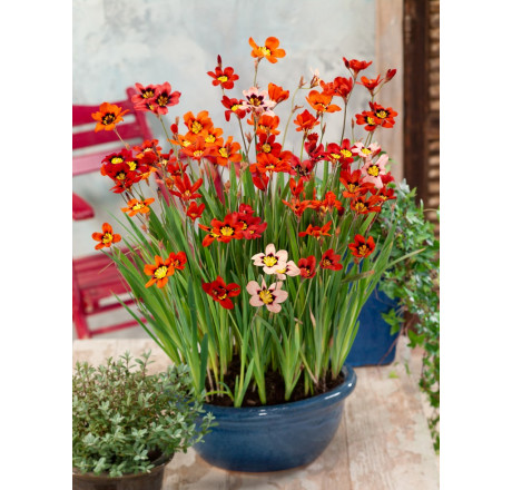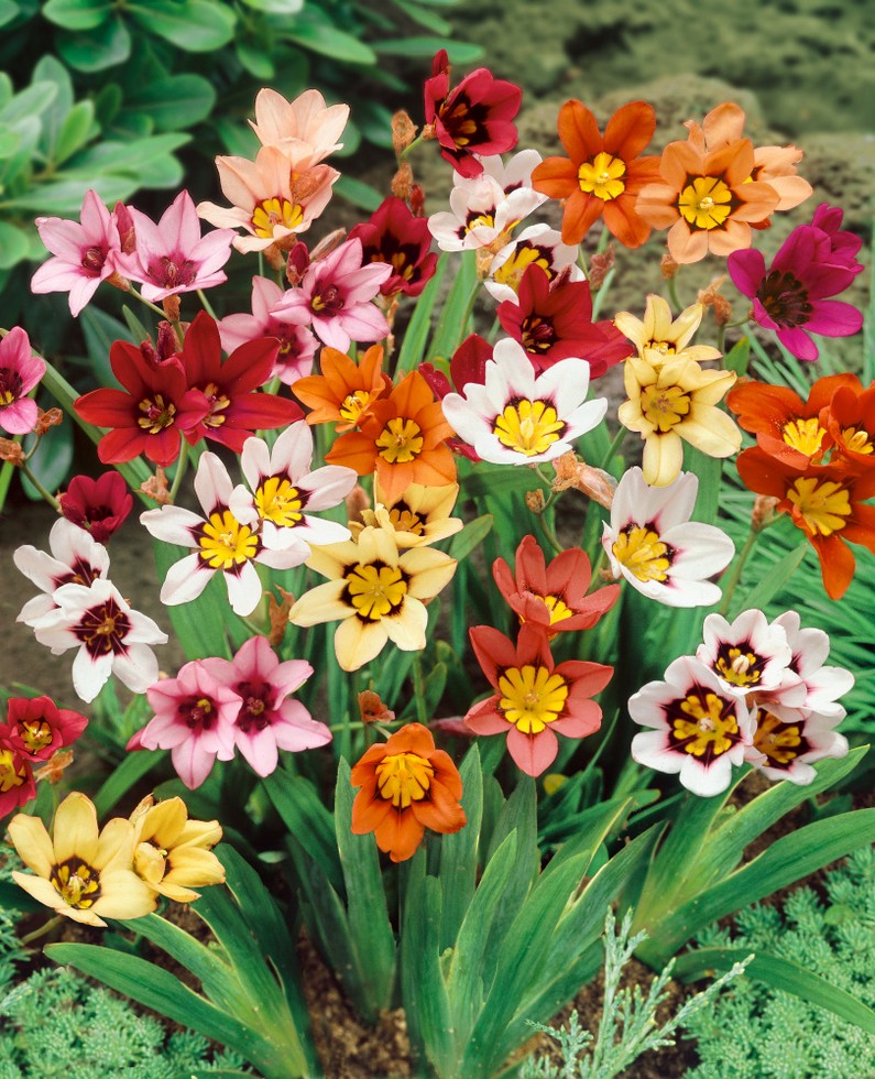 Ozdobná směs hlíznatých rostlin kvetoucích koncem jara a brzy v létě. Pěstují se pro velmi pestré květy. Potřebují slunce a propustnou půdu.*** PARAMETRY *** Barva květu - vícebarevná; Výška - 25 cm