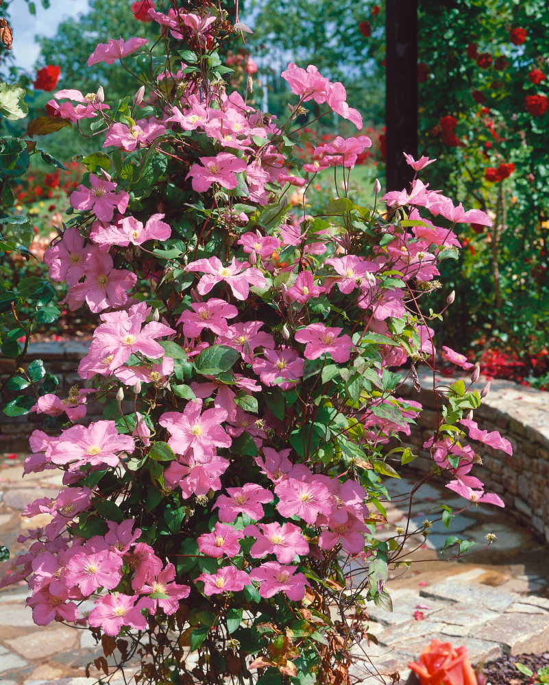 Jeden z nejkrásnějších velkokvětých hybridů. Květy jsou starorůžové, pozůstávající obyčejně ze šesti okvětních lístků. Může být posazený i k jiným listnatým nebo jehličnatým dřevinám, které mu budou sloužit jako opora. Rychle a intenzivně roste. Kvete v létě. Jeho barvu si zamilujete. Vhodný do romantických úprav. Brzy na jaře před začátkem růstu se všechny výhonky zkracují na 40 cm nad zemí. *** PARAMETRY *** Kvetení - 7, 8; Výška - nad 4 m; Šířka - do 1 m; Odolnost - plně mrazuvzdorná ; Světlo - slunce až polostín ; Řez - každoroční jarní řez ; Půda - středně těžké , piesočnatohlinité , hlinité ; Vlhkost půdy - středně vlhká ; Barva listu - zelená ; Barva květu - růžová ; Forma - popínavá ; Rychlost růstu - rychlý ; Lokalita - fasády , stěny , ploty , opěrné konstrukce
