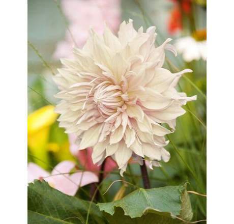 NOVINKA. Dahlia ´Café Au Lait´ – je dekorativní jiřina vysoká až 120-150 cm, květiny jsou velké, světle růžové. Má v oblibě jako všechny jiřiny sluneční stanoviště. Kvete až do mrazů. Výborná pro řez a do trvalkových záhonů.