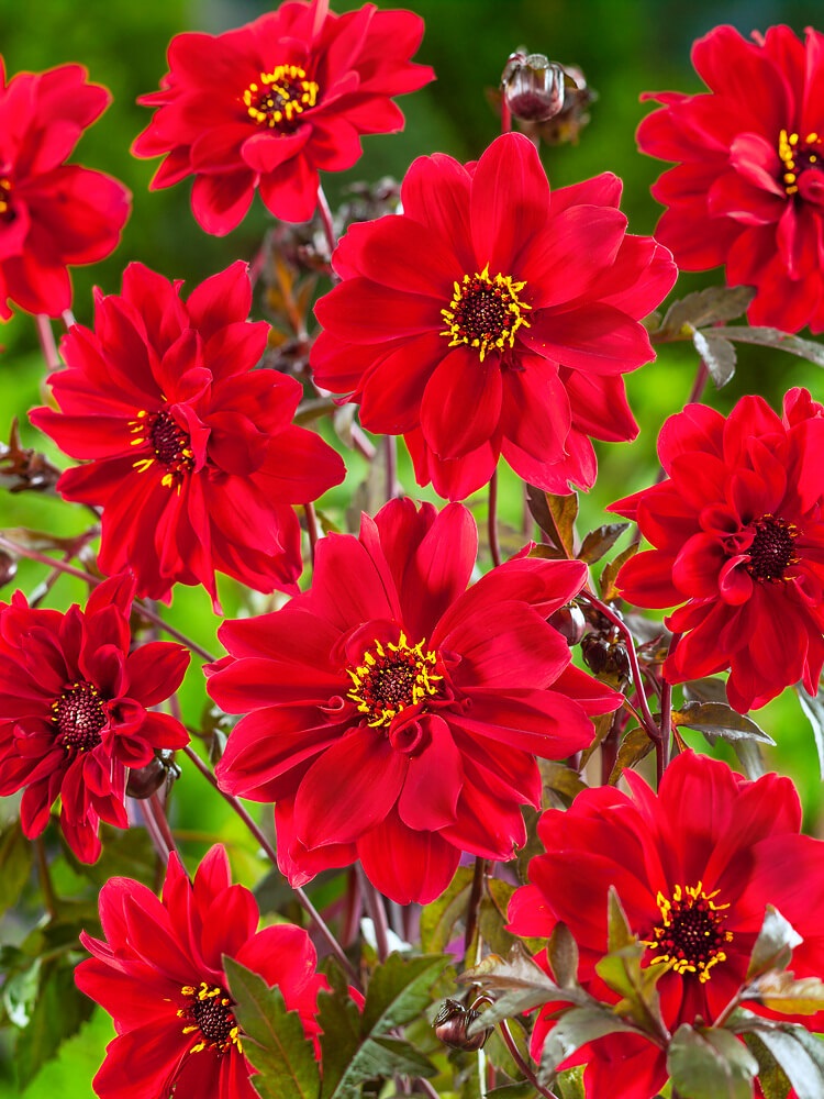 Nádherná venkovská jiřina, dosahuje výšky 100 cm, ideální do trvalkových záhonů. Květy jsou větrnicové, jednoduché, červené.