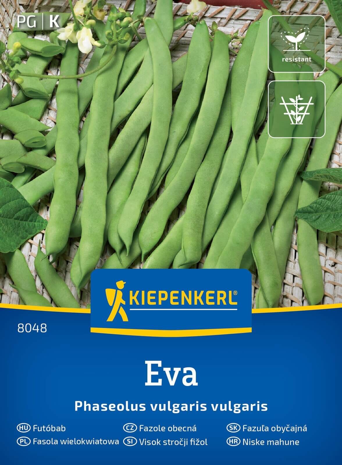 Fazole popínavé ´Eva´ patří mezi spolehlivé odrůdy a poskytuje vysokou časnou úrodu. Vyznačuje se rovnými, tmavě zelenými lusky s aromatickou chutí. Je vhodná pro pěstování ve sklenících a fóliovnících. Přes otevřený růst se velmi jednoduše sklízí. Sadí se od poloviny května do poloviny června a na lusky se můžete těšit od července do září. Obsah balení vystačí na 6 až 8 tyčí.