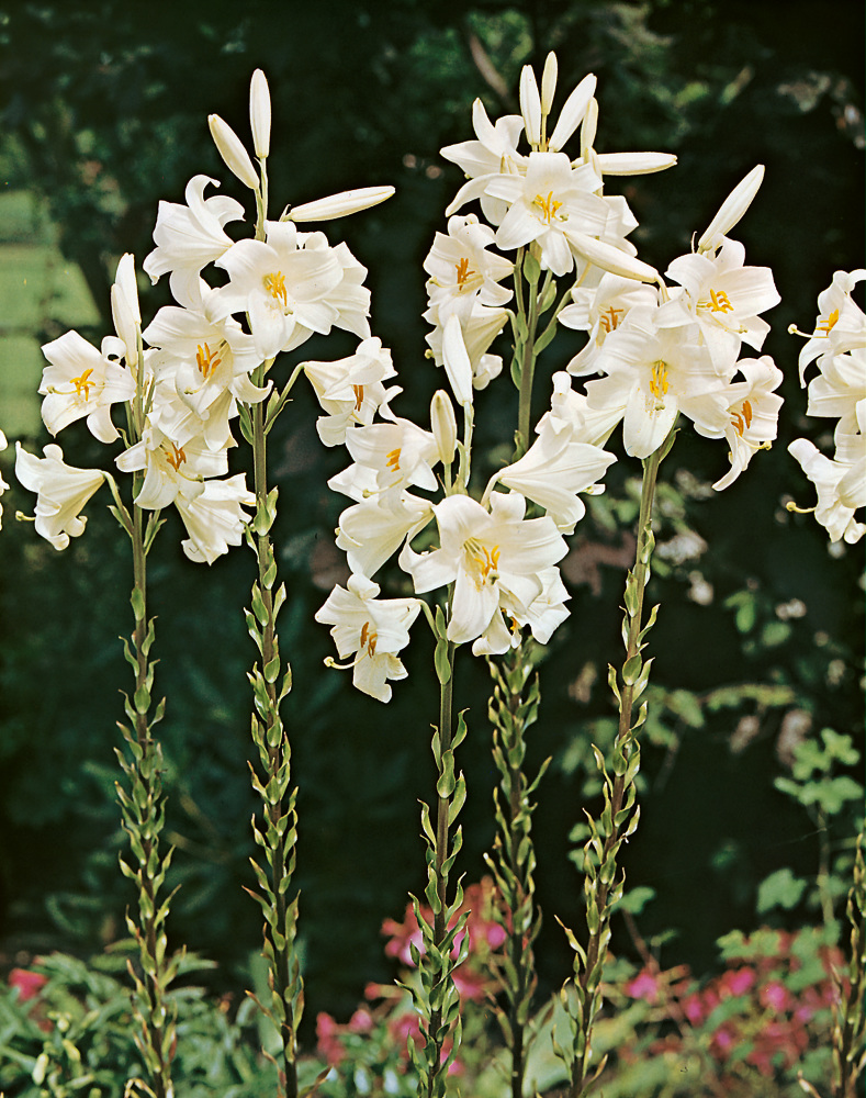 Jedinečná dlouhodobě oblíbená bíle kvetoucí lilie, která tvoří až 15 exoticky vonících voskových květů na 1 dlouhém stonku. Pěstuje se buď na záhonu nebo ve větších kontejnerech a svými květy přináší radost opravdu každý rok. Výška 70 cm.
