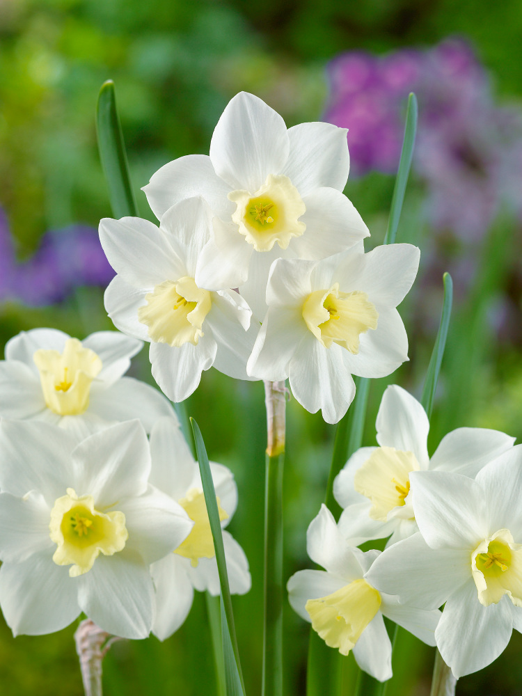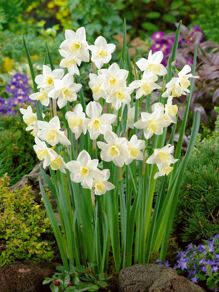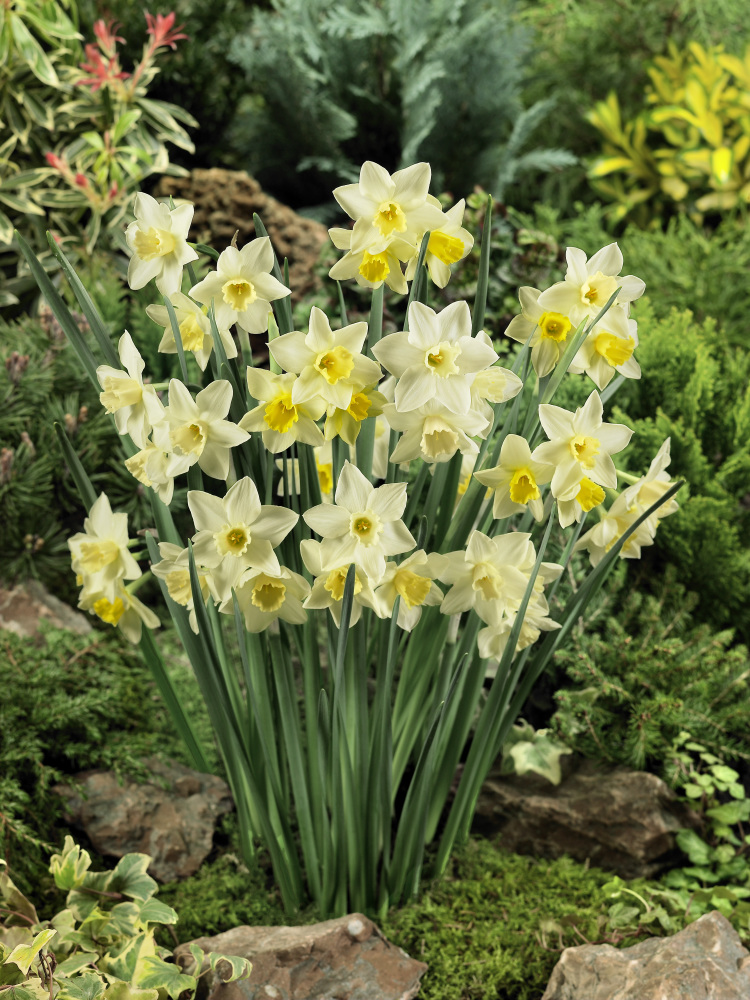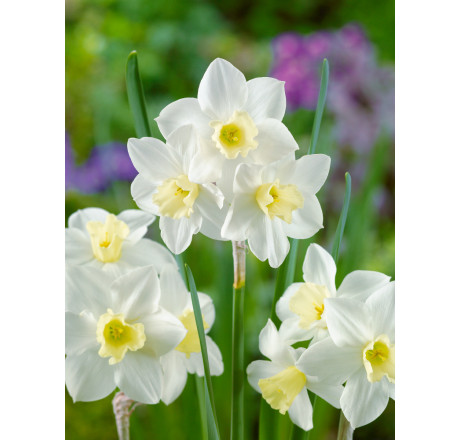 NOVINKA! Jemný a voňavý narcis. Na jednom stonku více květů. Kvete od března do dubna. Květy jsou krémově bílé s jemně žlutou pakorunkou, která je stejně velká jako okvětní lístky. Výška 25 cm.