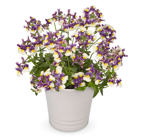 Neminio Up je vzpřímená a košatá nemesie, která potěší svou výraznou vůní a mimořádně dlouhým obdobím kvetení. V testování se ukázala jako jedna z nejodolnějších odrůd nemesii vůči teplu. Doporučuje se pěstování v individuálních květináčích nebo závěsných nádobách. *** PARAMETRY *** Kvetení - 5,6,7,8,9; Výška - do 30 cm; Šířka - do 30 cm; Odolnost - nepřezimuje, letnička_místo chráněné před větrem; Světlo - polostín; Řez -; Zálivka - střední; Půda - středně těžké, písčitohlinité, hlinité; Vlhkost půdy - středně vlhká; Barva listu - zelená; Barva květu - fialová_bílá; Rychlost růstu - středně rychlý; Umístění - črepníky_okraj záhonu; Speciální vlastnosti - dlouhé kvetení; Opadavost - opadavá