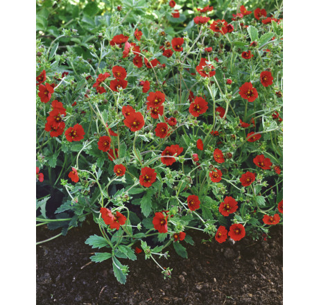 Mochna květem připomínající kvetoucí jahodu. Velmi rychle se rozrůstá a kvete početnými květy od června do července. Vyžaduje polostín a bohatou zálivku.***PARAMETRY***Kvetení - 6 , 7 ; Výška - do 30 cm; Odolnost - plně mrazuvzdorná ; Světlo - slunce až polostín ; Zálivka - střední ; Půda - středně těžké , písčitohlinité , hlinité ; Vlhkost půdy - středně vlhká ; Barva listu - zelená ; Barva květu - červená; Forma - plazivá ; Rychlost růstu - středně rychlý ; Umístění - půdopokryvné_okraj záhonu_suché kamenné zídky