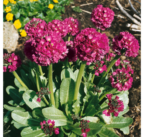 Prvosenka s kulovitým květem. Vyžaduje půdu bohatou na humus, dostatek jarního slunce a stále vlhkou zem. Kvete od března do dubna.***PARAMETRY***Kvetení - 3 , 4 ; Výška - do 30 cm; Odolnost - plně mrazuvzdorná ; Světlo - slunce až polostín ; Zálivka - střední ; Půda - středně těžké , písčitohlinité , hlinité ; Vlhkost půdy - vlhká ; Barva listu - zelená ; Barva květu - červená ; Rychlost růstu - středně rychlý ; Umístění - skupinová výsadba_květináče_skalka ; Speciální vlastnosti - jedovatost