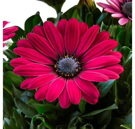 NOVINKA. Osteospermum je v našich podmínkách letnička. Pochází z jižní Afriky. Vysazuje se do nádob, často i v kombinaci s muškáty nebo jinými balkonovkami. Květy jsou velké purpurové až vínové a v noci nebo během špatného počasí se zavírají. Je oblíbená zejména pro její nenáročnost a bohaté, dlo...