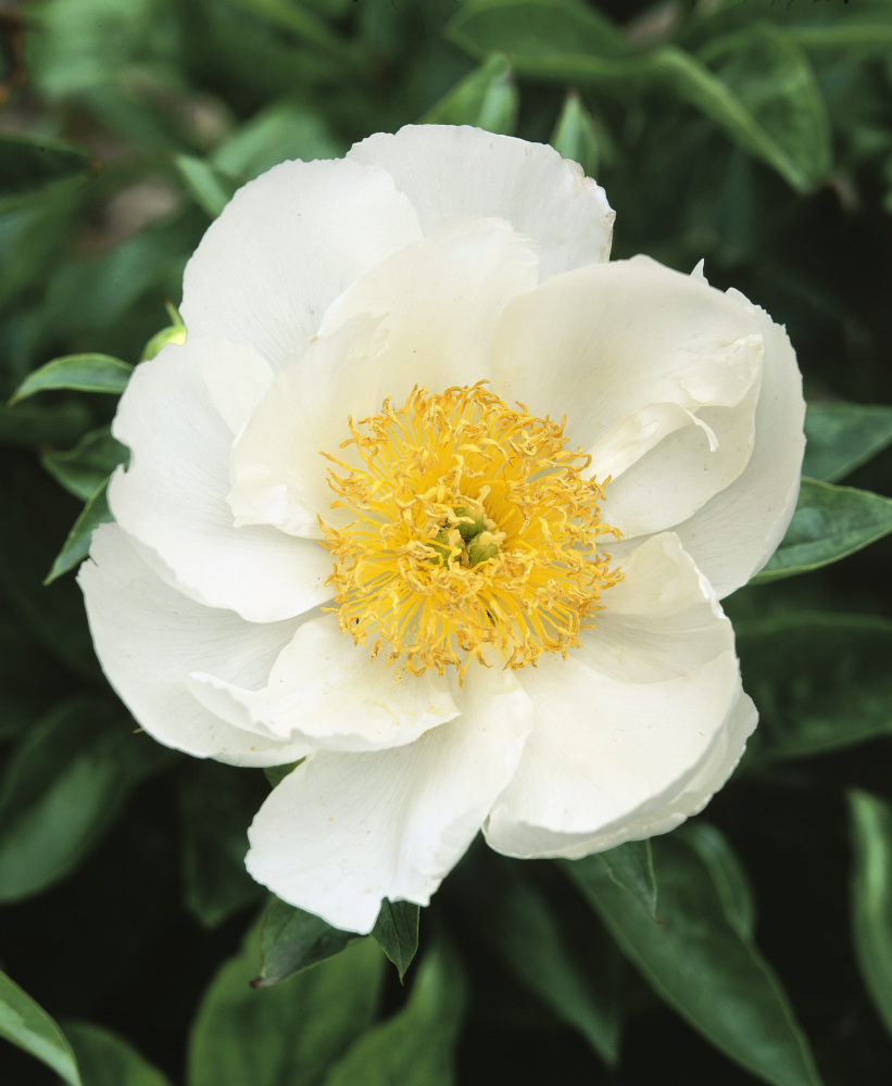 Bílá elegantní kráska s jednoduchými miskovitými květy a žlutým středem. Kvete od konce jara do začátku léta. Celá rostlina je středně vysoká s dělenými listy svěží zelené barvy, které během léta tmavnou. Vhodná do pozadí, jako solitér nebo na trvalkové záhony.