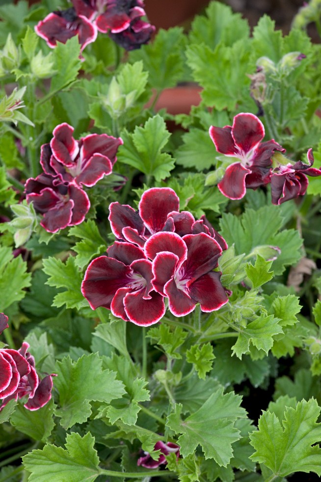 Velkokvěté muškáty se vyznačují kompaktním vzrůstem a tvorbou mnoha nepoměrně velkých květů. Listy jsou dekorativní a barevně doplňují pestrobarevné květy. Pěstovat se dají i jako pokojové rostliny. Kvést začínají již v půli dubna. Pomaleji rostoucí kultivar s nevšedními tmavě červenými květy s j...