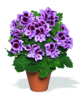 Velkokvěté muškáty se vyznačují kompaktním vzrůstem a tvorbou mnoha nepoměrně velkých květů. Listy jsou dekorativní a barevně doplňují pestrobarevné květy. Pěstovat se dají i jako pokojové rostliny. Kvést začínají již v půli dubna. Kultivar s fialovými květy a tmavším očkem ve středu. Daří se mu na slunném místě i v polostínu. Pravidelné odstraňování odkvetlých květenství prodlouží jeho kvetení. Dá se přezimovat, mnozí ho však pěstují jako letničku. ***PARAMETRY***Světlo - slunce, polostín; Půda - středně těžká, písečnatohlinitá, hlinitá; Umístění - květináče; Odolnost - zazimování v chladné a světlé místnosti; Řez - každoroční řez po odkvětu; Zálivka - střední; Vlhkost půdy - středně vlhká; Barva listu - zelená; barva květu - fialová; Kvetení - 4,5,6,7,8; Speciální vlastnosti - přitahuje motýli a včely_dlhé kvetení; Výška - do 30 cm;; Rychlost růstu - středně rychlý; Opadavost - stálezelená rostlina; Šířka - do 30 cm