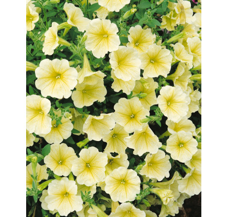 Ve společenství jiných barev petunií nebo dalších letniček vytvoří pestrou letní kompozici. Kompaktní krémově žlutá petunie bude příjemným společníkem při Vašich podvečerních posezeních na terase nebo balkónu.
