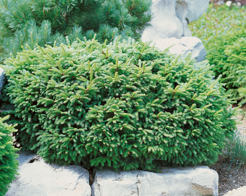 Trpasličí smrk polokulovitého tvaru, zvrchu jakoby zkosený s prohlubní uprostřed. Vhodný do skalek.***PARAMETRY***Výška - do 1 m ; Odolnost - plně mrazuvzdorná ; Světlo - slunce ; Zálivka - střední ; Půda - středně těžké , písčitohlinité , hlinité ; Vlhkost půdy - středně vlhká ; Barva listu - zelená ; Forma - kulovitá ; Rychlost růstu - pomalý ; Umístění - skalka