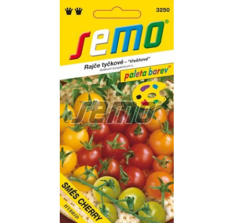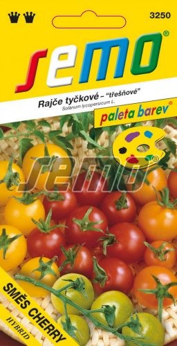 Rajče tyčkové ´Směs barev Cherry F1´ je směs barevných a chutných malých rajčat, odrůdy jsou vhodné pro polní pěstování a pěstování ve sklenících či fóliovnících. Osivo je barevne odlišeno. Obsahuje odrůdy: Sungreen, Sungold, Sunpeach, Sunlemon.