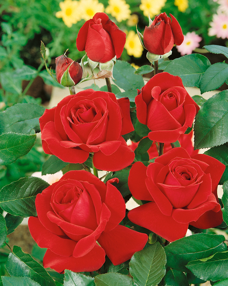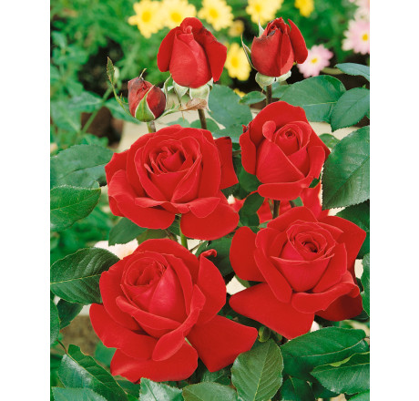 Když se řekne růže, mnoho lidí si nepředstaví růži růžové barvy, ale právě tento čajohybrid plně červené barvy. Je odolnější vůči chorobám než jeho předchůdci a Vaše srdce si podmaní dlouhými stonky s omamně vonícími květy. Kvetení - VI - IX, Výška - 1,5 m.