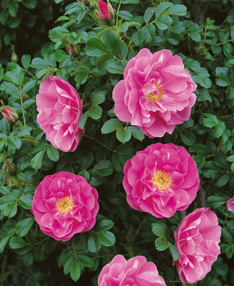 Odrůda ’Karpatia’ je nejvíce rozšířená. Keře rostou bujně, vzpřímeně, v období plodnosti se mírně rozkládají. Letorosty jsou silné, dlouhé, vínově červené, řídce ostnité. Květy se objevují koncem května, jsou velké, o průměru 5 cm, jednoduché, růžové. V době květu je růže odolná proti pozdním jar... Číst více