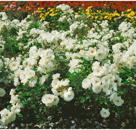 Nevinně krásná růže Vás určitě dostane. Bílé květy vyrůstají ve svazcích a příjemně voní. Keř je mohutný a bujně roste do výšky. Vhodná jako solitéra, na záhony i živé ploty. Kvetení - VI - IX, Výška - do 150 cm.
