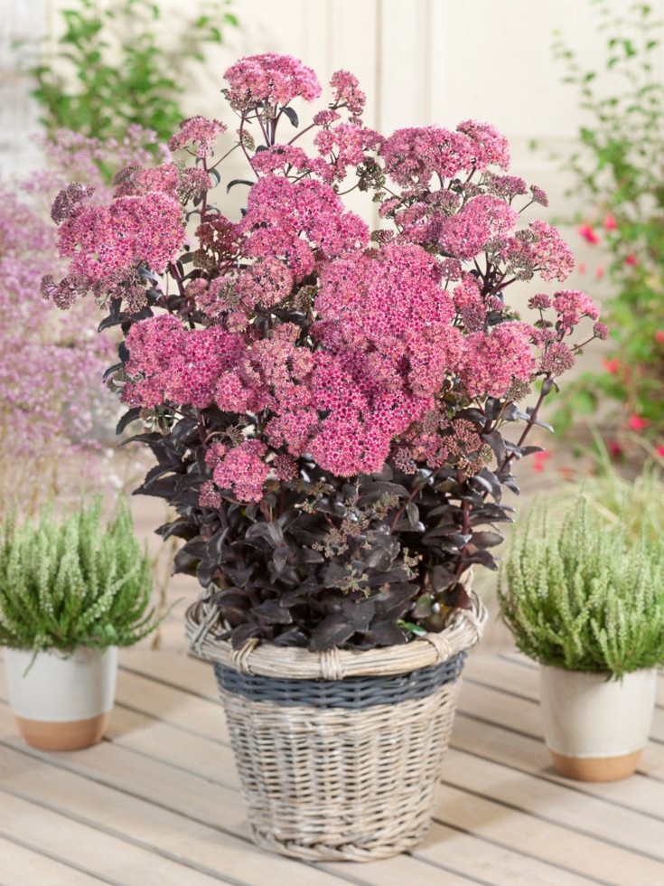 Sedum 'Jose Aubergine' patří mezi dominantní trvalky podzimu. Nádherné květenství se vyjímají nad tmavými listy. Je to vyšší rozchodník, 50 cm a kvete, když už mnohé trvalky odkvétají nebo se ukládají na spánek. Tmavé purpurové listy a tmavočervené květy určitě na záhoně nepřehlédnete. Vynikne v skalce, v suchém zídce i v nádobě. Daří se mu ve společenství okrasných trav, v propustné a sušší půdě na přímém slunci. Kvete od srpna do října. *** PARAMETRY *** Kvetení - 8, 9,10; Výška - do 50 cm; Šířka - do 30 cm; Odolnost - plně mrazuvzdorná; Světlo - slunce; Řez - na jaře; Zálivka - střední; Půda - středně těžké, písečnatě-hlinité, hlinité_lehké písčité; Vlhkost půdy - středně vlhká; Barva listu - červená; Barva květu - růžová; Rychlost růstu - středně rychlý; Umístění - okraj záhonu_skalka_květináče_svah_suché kamenné zídky; Speciální vlastnosti - přitahuje motýly a včely; Opadavost - opadavá