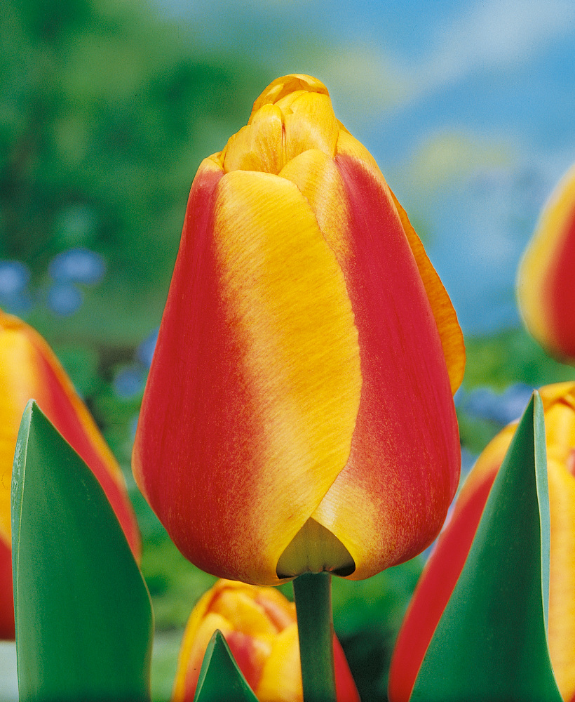 Kombinace žluté a jemné bledě červené barvy je poznávacím znakem tulipánu, pro jehož úspěšný růst a kvetení jsou vhodnější teplejší klimatické podmínky. Výška 50 cm.