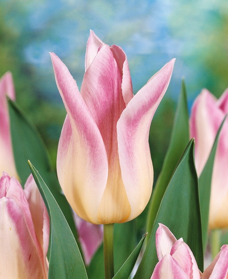 Krása tohoto tulipánu spočívá v sympatické kombinaci typického tvaru liliokvětých tulipánů v kombinaci s poutavým prolínáním bílé a růžové barvy. Výška 60 cm.