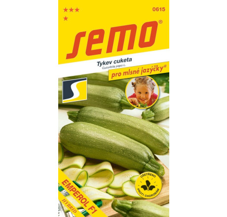 ´EMPEROL F1 ´je rovnoměrně plodící cuketa s kratšími (15 až 20 cm) válcovitými, tupě zakončenými plody bílo zelené barvy s jemnou síťovanou slupkou. Je raná, velmi výnosná a určená zejména pro sklizeň mladých lahůdkových „baby“ plodů, které jsou velice jemné, zvláště vhodné na grilování a pečení.
