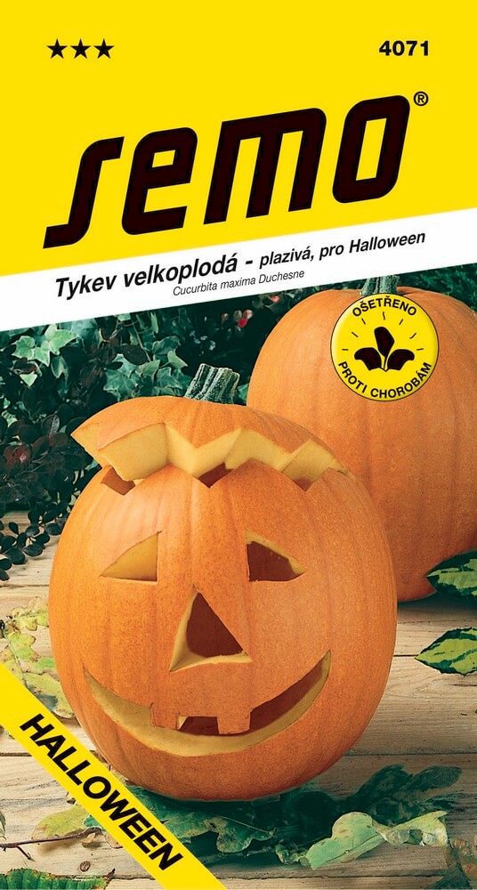 Ideální tykev pro podzimní svátek Halloween. Kulatý, hladký a pevný plod váží okolo 8 - 12 kg, pokožka je lesklá, jasně oranžová. Dužnina je kompaktní, oranžová. Vhodná pro konzervování.