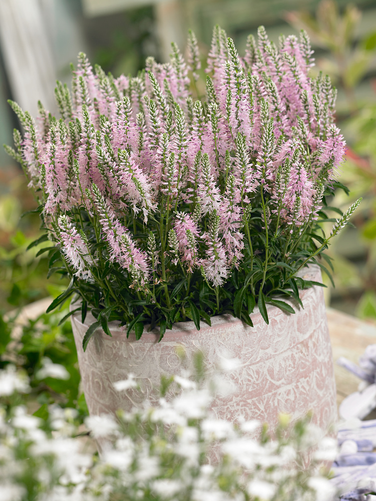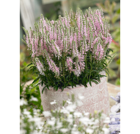 Rozrazil, tvořící kompaktní trsy zelených listů s vysokými dlouhými jehlicovitými soukvětími, které nesou množství růžových květů. ***PARAMETRY***Kvetení - 5 , 6 , 7 ; Výška - do 50 cm; Odolnost - plně mrazuvzdorná ; Světlo - slunce až polostín ; Řez - do vázy ; Zálivka - střední ; Půda - středně těžké , písčitohlinité , hlinité ; Vlhkost půdy - suchá ; Barva listu - zelená ; Barva květu - růžová ; Rychlost růstu - středně rychlý ; Umístění - skupinová výsadba