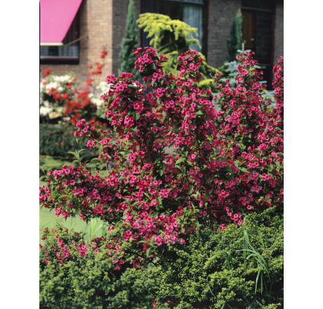 Vajgelie květnatá - růžová je opadavý, hustý, středně vysoký keř se světlými listy a zářivě růžově červenými květy. Kvete koncem jara až začátkem léta. Vhodná do každé zahrady. Nenáročná na pěstování. Snadno se rozmnožuje řízkováním. Své místo v zahradě najde ve smíšených křovitých výsadbách, na trvalkových záhonech do pozadí i jako solitér. Vhodná na výsadby do nádob na terasy, zatímco vyroste na velký keř.***PARAMETRY***Kvetení - 5 , 6 ; Výška - do 4 m ; Odolnost - plně mrazuvzdorná ; Světlo - slunce ; Řez - zmlazení 2-3 letech ; Zálivka - střední ; Půda - středně těžké , písčitohlinité , hlinité ; Vlhkost půdy - středně vlhká ; Barva listu - zelená ; Barva květu - červená; Rychlost růstu - rychlý ; Umístění - solitéra_skupinová výsadba_živé ploty
